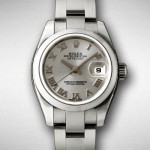 スチール・コンビネーション・ゴールド・プラチナといった素材に加え、ダイヤルやインデックスなどライフスタイルやファッションに合わせて選べる多彩なバリエー ションが魅力のひとつ。また、スモールサイズながらもメンズモデルと同等の性能を備え、ロレックスのレディースモデルの中で圧倒的な人気を誇っている。